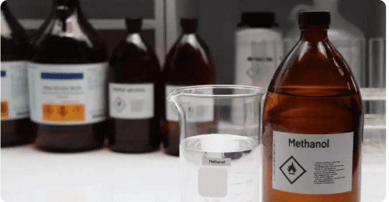 Metanol um álcool líquido, incolor e também conhecido como álcool metílico. Embora semelhante ao etanol na aparência, não deve ser confundido com o álcool usado em bebidas.
