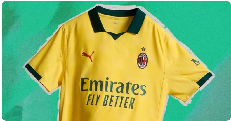 A camisa é predominantemente amarela, com detalhes em verde escuro na gola polo e nas mangas. O símbolo da patrocinadora aparece em vermelho, no mesmo tom do escudo do Milan. O uniforme alternativo se junta às outras duas opções já conhecidas para a temporada: o tradicional rubro-negro listrado e o branco com detalhes vermelhos e pretos.