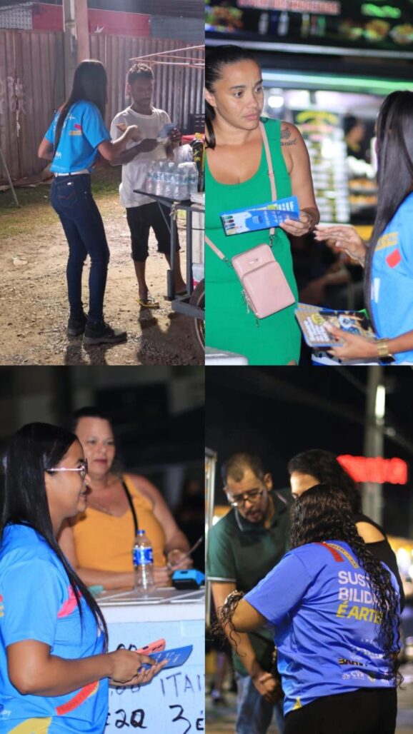 No início dos shows, aconteceu a ação educativa com os barraqueiros que foram orientados sobre o descarte correto dos resíduos e a importância da reciclagem.
