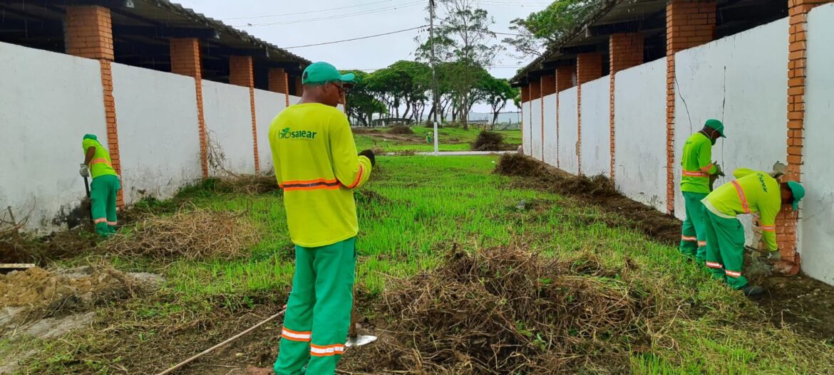 Serviços de roçagem de áreas públicas estão sendo realizados na Rua 21 e no campo de futebol do Parque Boa Vista. Também acontece a limpeza da área do campo do bairro Santa Inês, na zona norte da cidade.