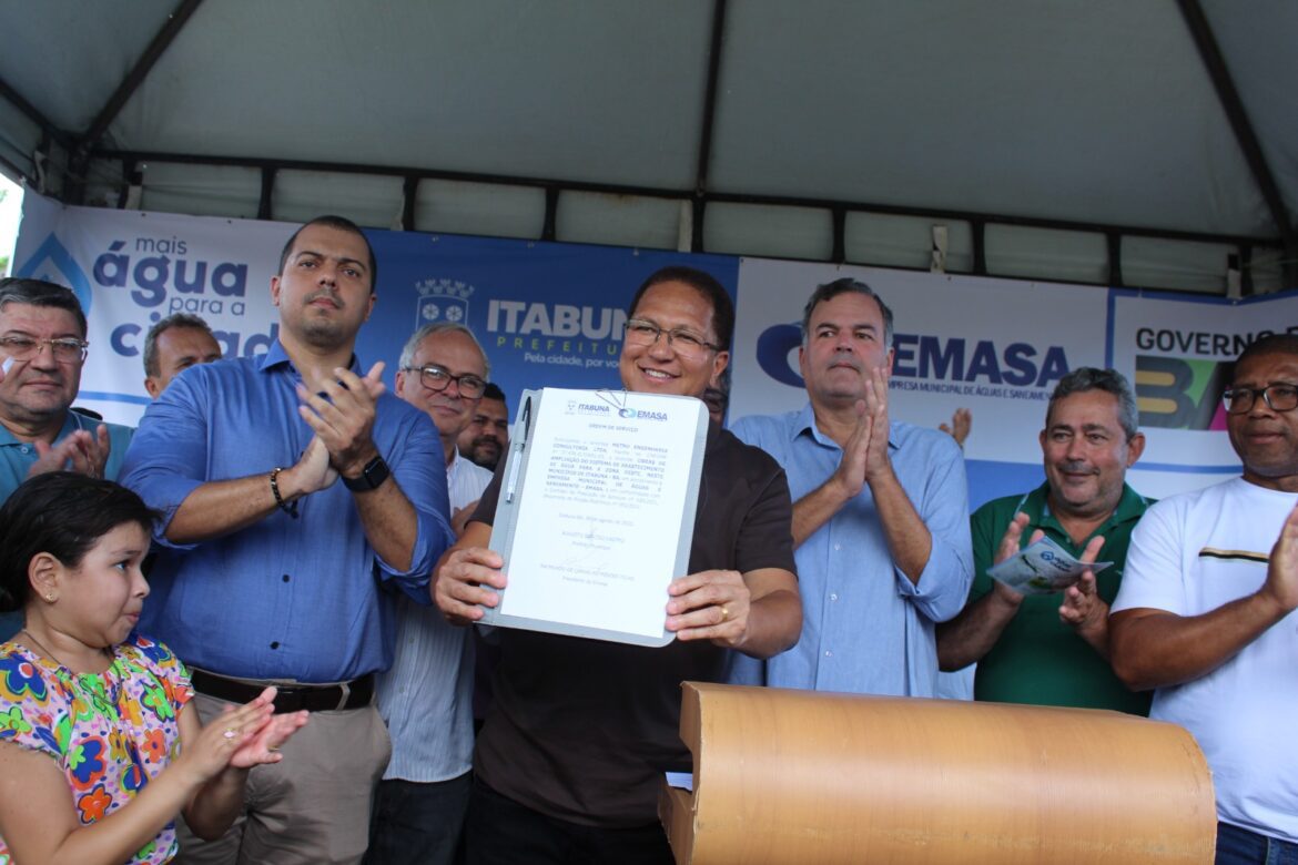 O prefeito de Itabuna, Augusto Castro (PSD), e o presidente da Empresa Municipal de Águas e Saneamento (EMASA), Raymundo Mendes Filho, assinaram na manhã de hoje, dia 9, no Bairro Jorge Amado, a ordem de serviço para ampliação do sistema de abastecimento de água para a zona oeste. As obras que serão iniciadas de imediato e fazem parte do Projeto Mais Água para a Cidade.